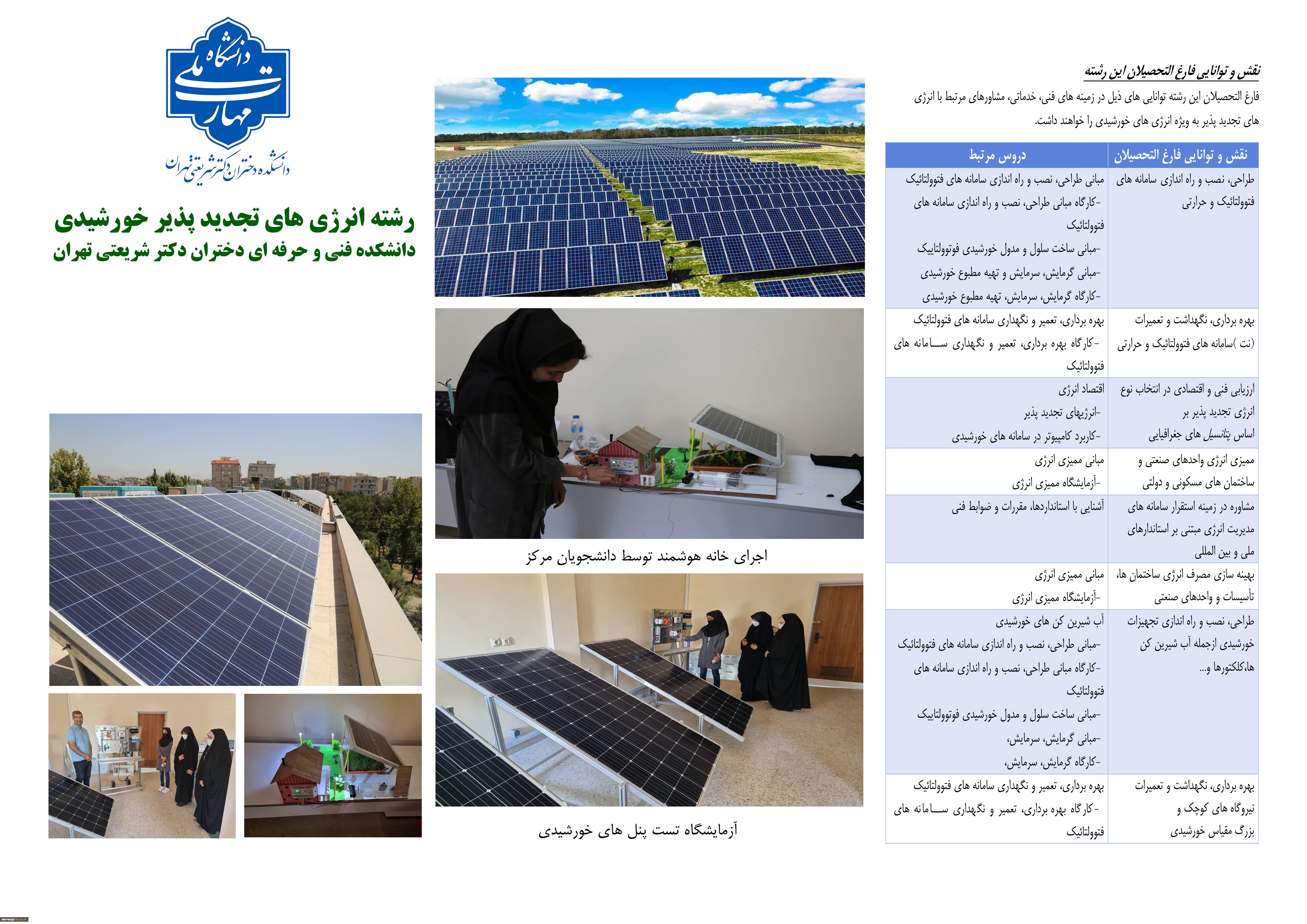 امتیاز دهید : قابل توجه دارندگان دیپلم ریاضی-فیزیک، علوم تجربی و فنی-حرفهای الکترونیک: پذیرش کاردانی انرژی تجدیدپذیر خورشیدی در دانشکده ملیمهارت شریعتی تهران ویژه دختران 3 دوشنبه 19 آبان 1404 ساعت 12:57
